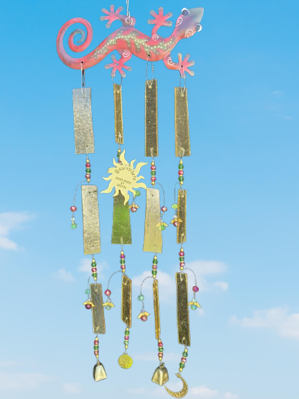 This beautiful, one-of-a-kind wind chime is approximately 21.5" long and 7.5" wide.