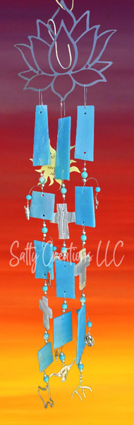 This beautiful one-of-a-kind wind chime is about 33" long and 6" wide.