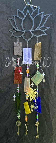 The various shapes of the glass pieces affect the sound of the chime in the wind so each glass piece contributes to the beauty of the chime.